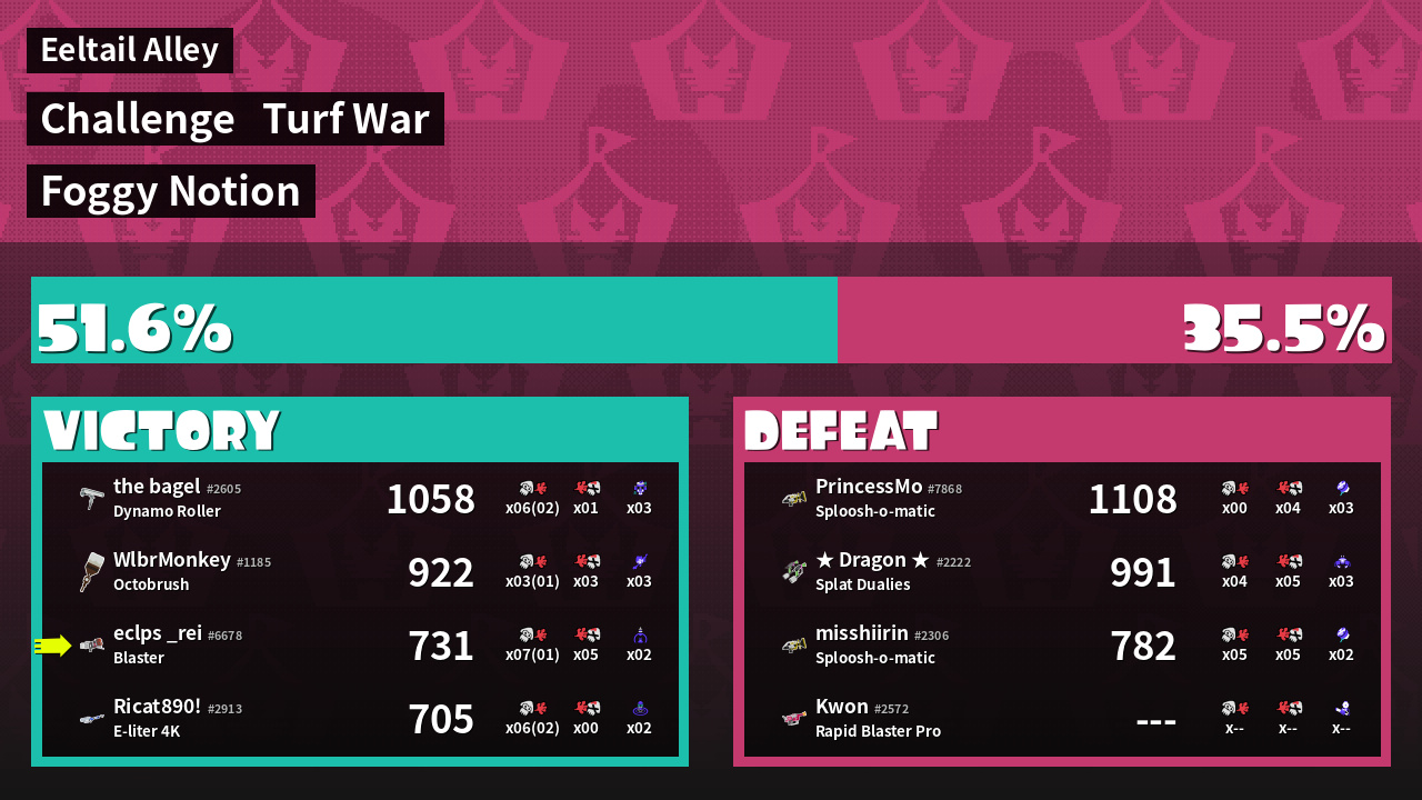 | Mode | Turf War - Challenge | ||