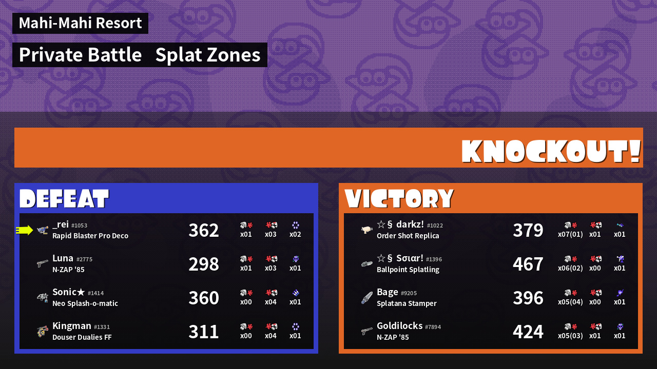 | Mode | Splat Zones - Private Battle | ||