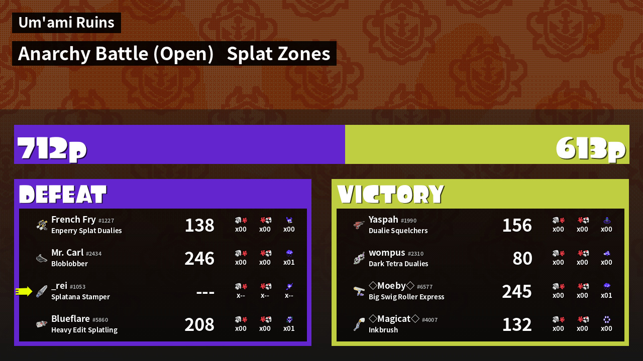| Mode | Splat Zones - Anarchy Battle (Open) | ||