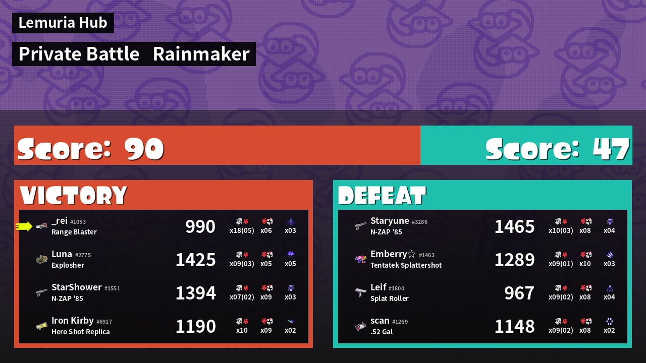 | Medals | #1 Overall Splatter #1 Popular Target #1 Enemy Splatter | ||