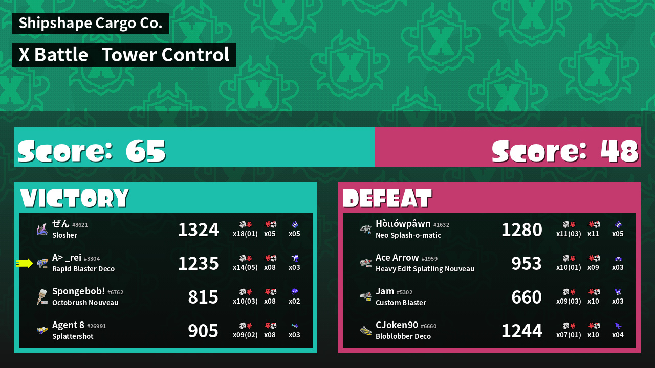 | Medals | #1 Splat Assister #1 Tower Stopper #1 Ink Consumer | ||