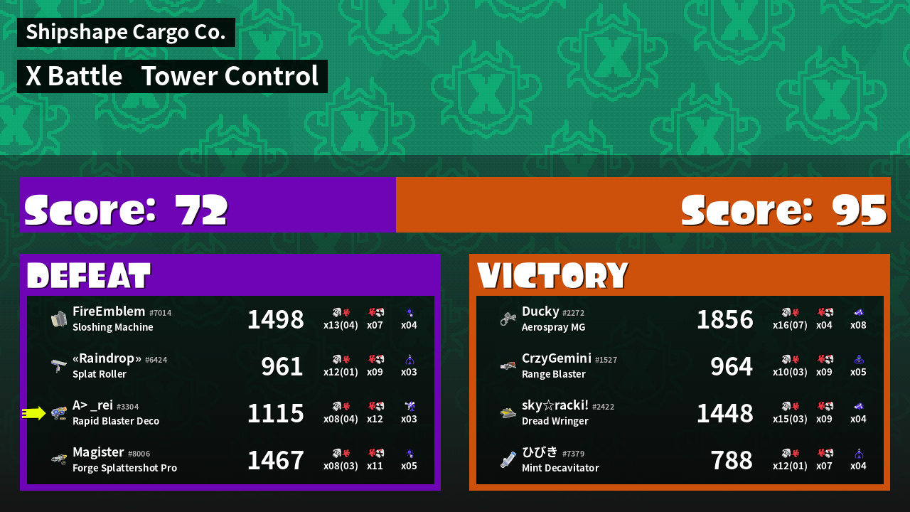| Medals | #1 Splat Assister #1 Checkpoint Breaker #1 Ink Consumer | ||