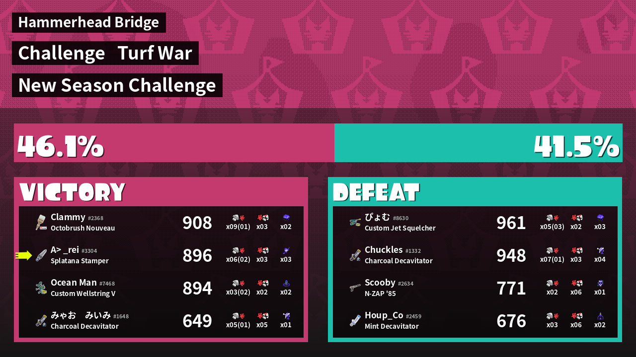 | Medals | #1 Enemy-Base Inker #1 Super Jump Spot #1 Splat Assister | ||