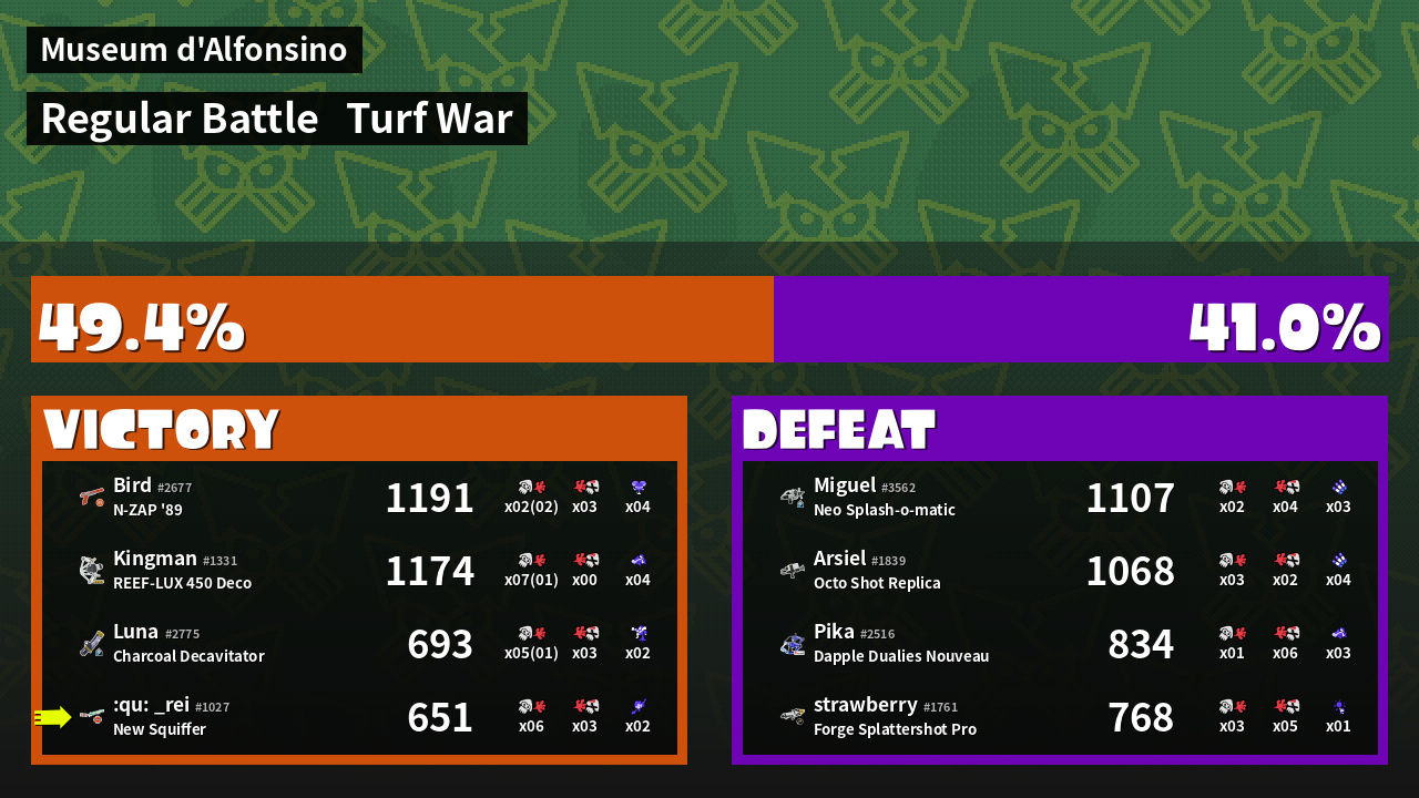 | Mode | Turf War - Regular Battle | ||