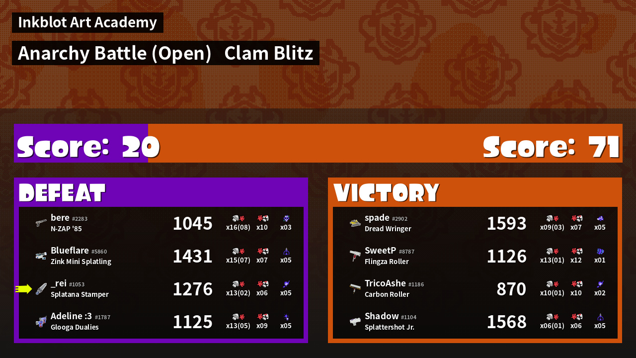 | Mode | Clam Blitz - Anarchy Battle (Open) | ||
