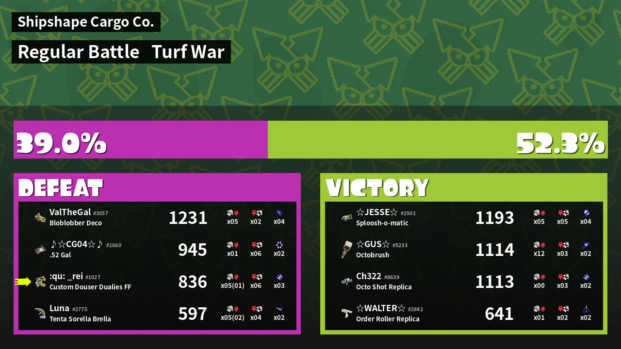 | Medals | #1 Overall Splatter #1 Enemy-Base Inker First Splat! | ||