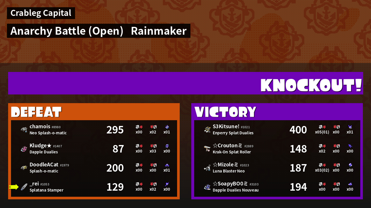 | Mode | Rainmaker - Anarchy Battle (Open) | ||