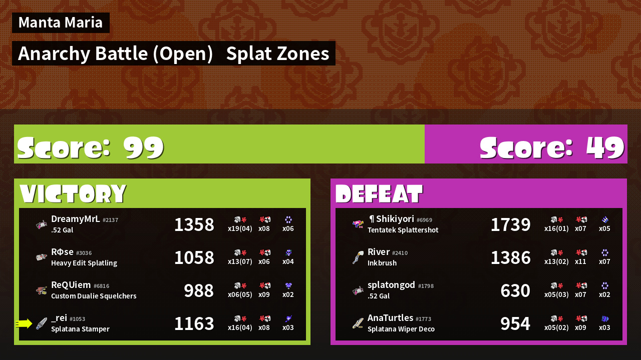 | Mode | Splat Zones - Anarchy Battle (Open) | ||