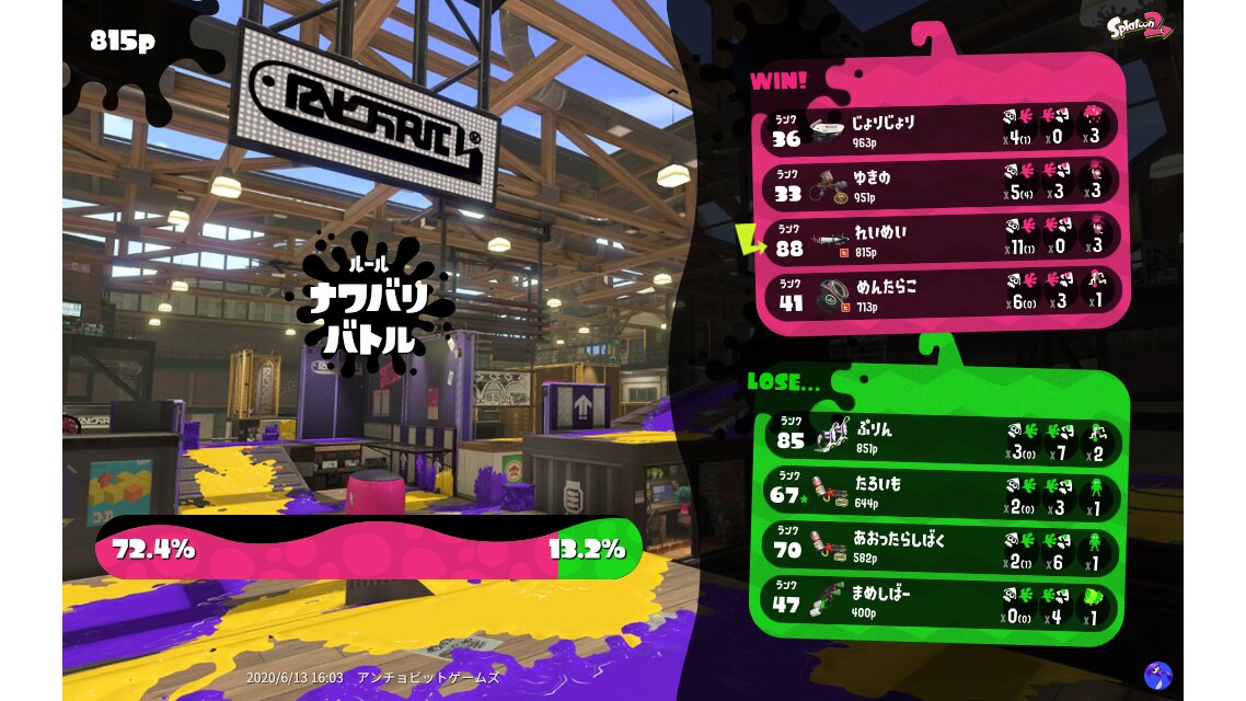 | Mode | Turf War - Regular Battle | |||||||||||||||||||||||||||||||