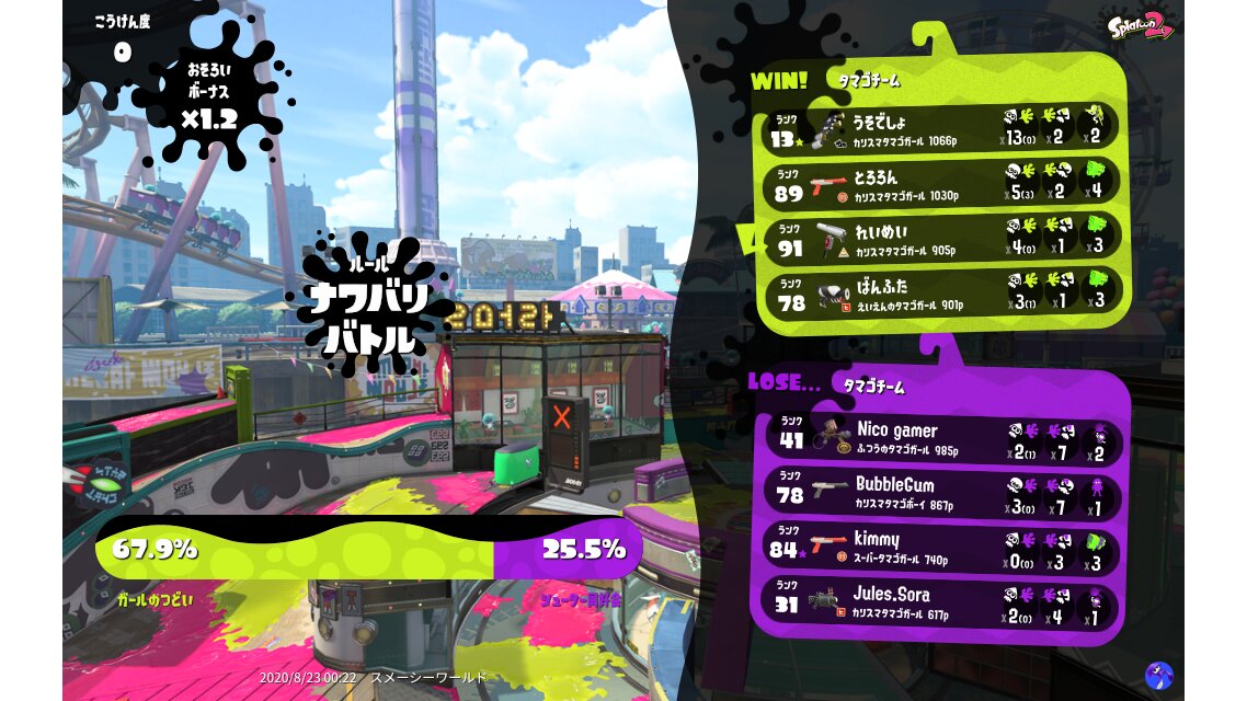 | Team タマゴ シューター同好会 Win Streak: 0 | 3,209 | 6 / 21 | 0.29 22.22% | ||||