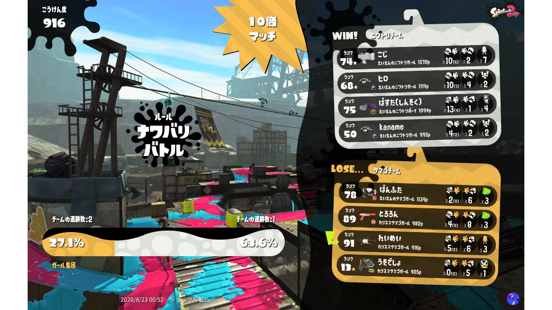 | Splatfest Title | タマゴ Champion 574 → タマゴ Champion 594 | ||||||||||||||||||||||||||||||||||