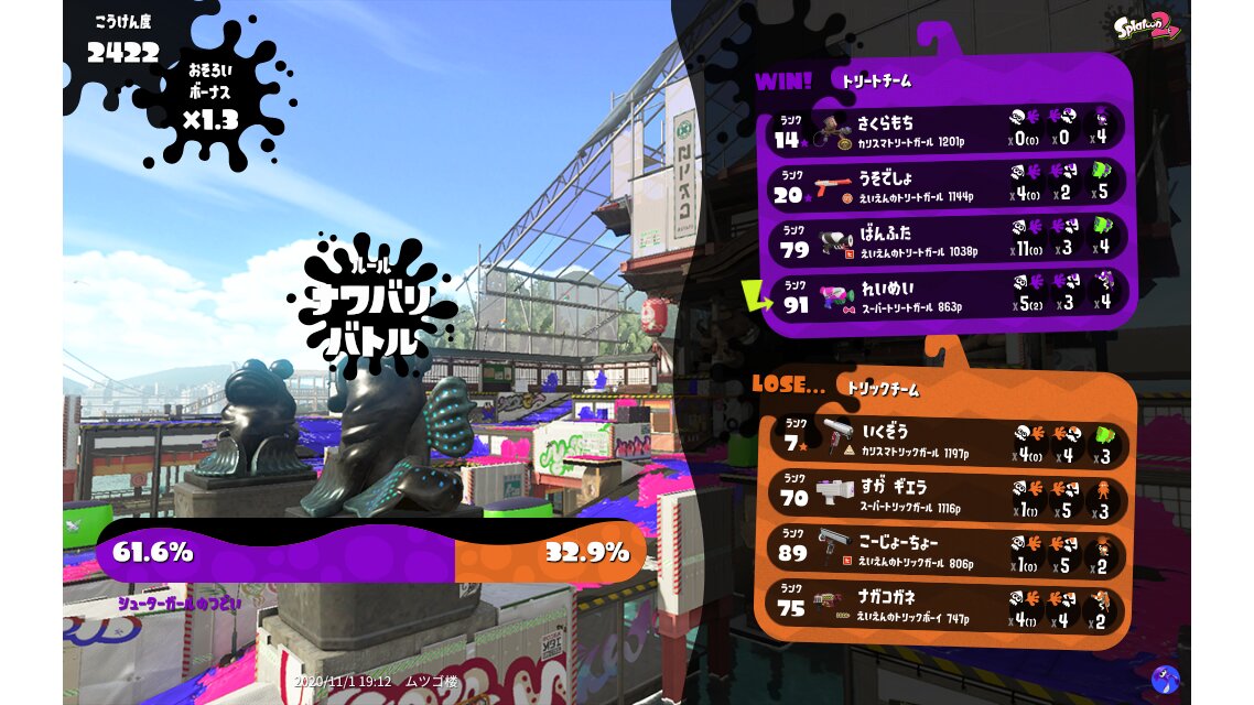 | Splatfest Title | トリート Defender 440 → トリート Champion 57 | ||||||||||||||||||||||||||||||||||||||||
