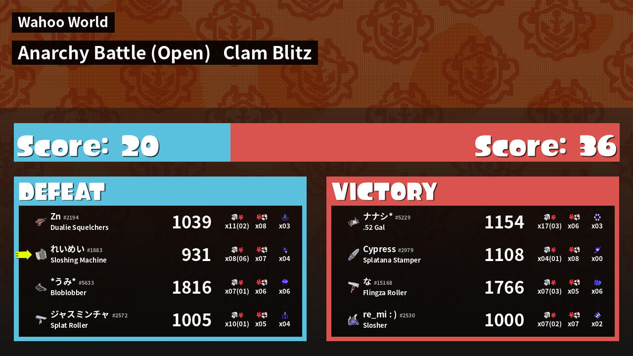 | Mode | Clam Blitz - Anarchy Battle (Open) | ||