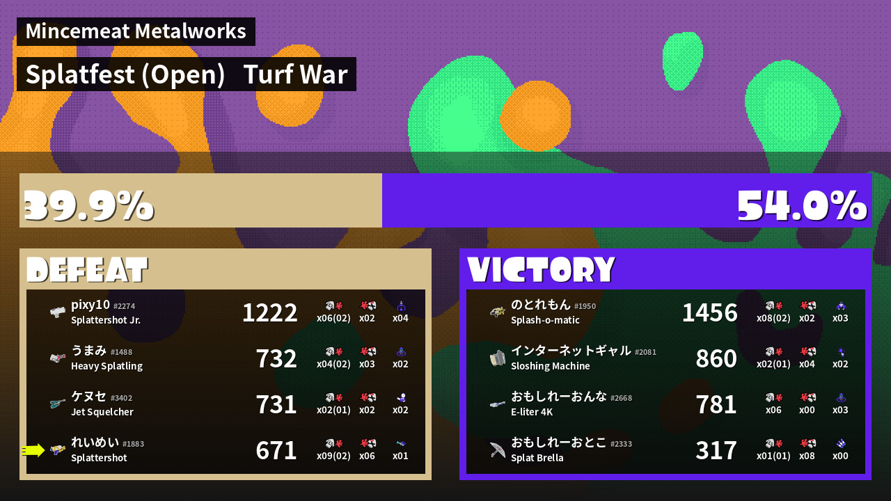 | Medals | #1 Overall Splatter #1 Enemy Splatter #1 Splat Assister | ||