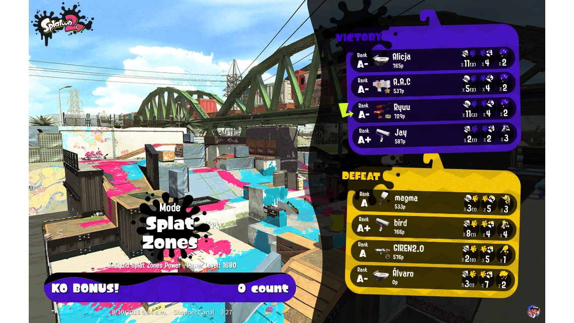 | Mode | Splat Zones - Ranked Battle | ||||||||||||||||||||||||||||||||||||||||