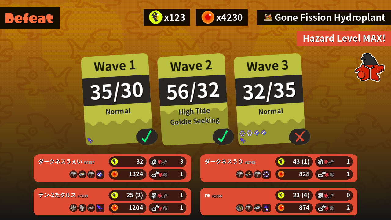 | Weapons | Grizzco Roller Grizzco Brella Grizzco Roller | Grizzco Roller Grizzco Blaster Grizzco Roller | Grizzco Dualies Grizzco Stringer Grizzco Charger | Grizzco Slosher Grizzco Roller Grizzco Brella |
