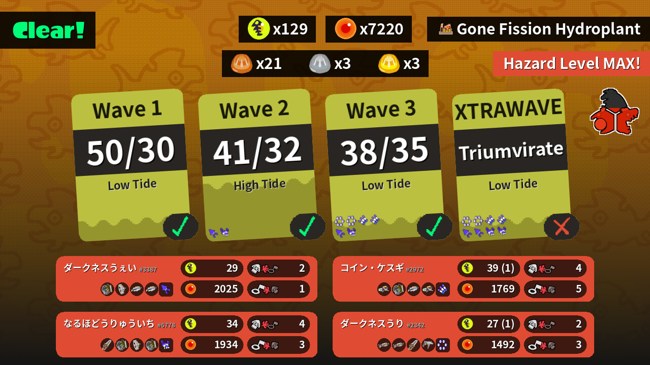 | Weapons | Grizzco Slosher Grizzco Stringer Grizzco Brella Grizzco Brella | Grizzco Blaster Grizzco Slosher Grizzco Brella Grizzco Blaster | Grizzco Splatana Grizzco Slosher Grizzco Stringer Grizzco Slosher | Grizzco Charger Grizzco Charger Grizzco Splatana Grizzco Roller |