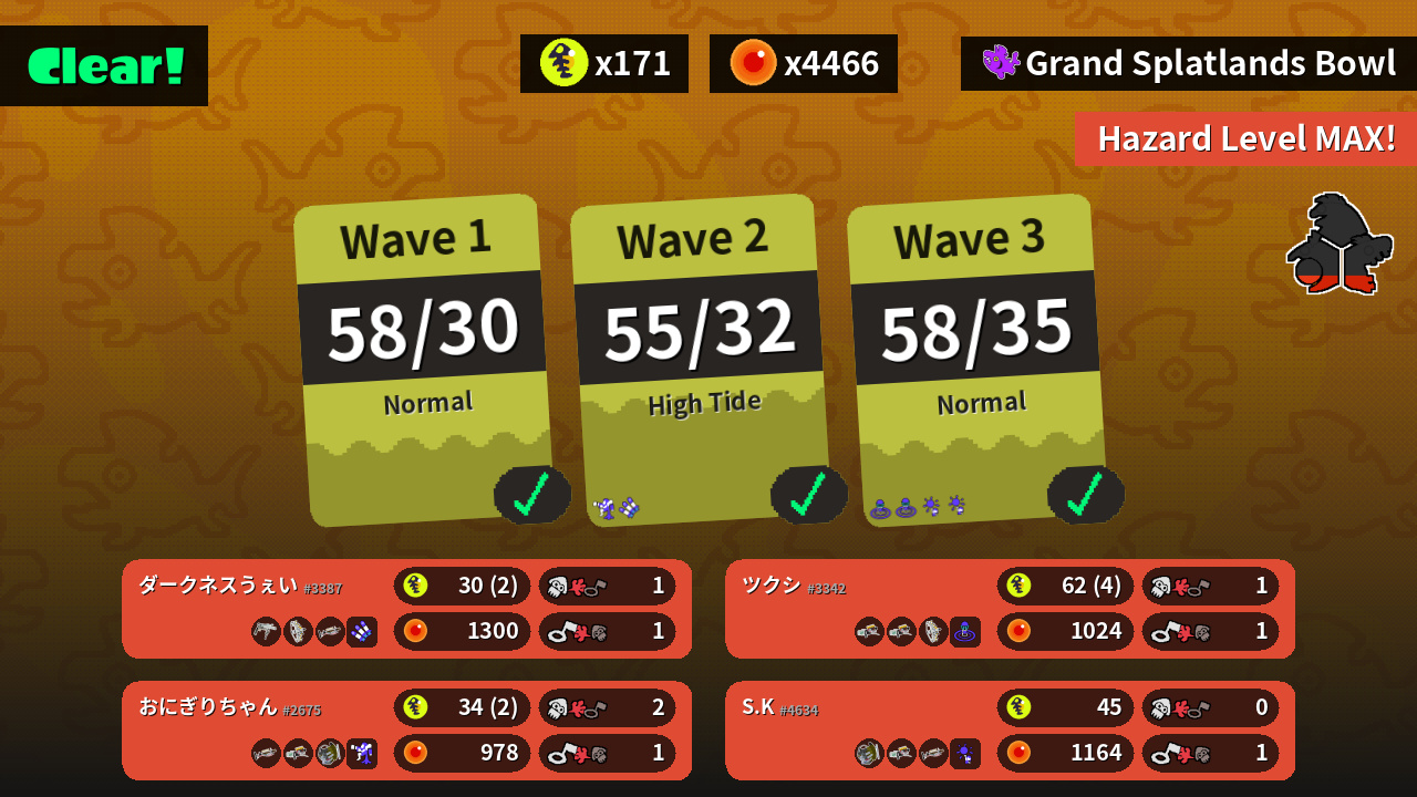 | Weapons | Grizzco Roller Grizzco Stringer Grizzco Charger | Grizzco Blaster Grizzco Blaster Grizzco Stringer | Grizzco Slosher Grizzco Blaster Grizzco Charger | Grizzco Charger Grizzco Blaster Grizzco Slosher |