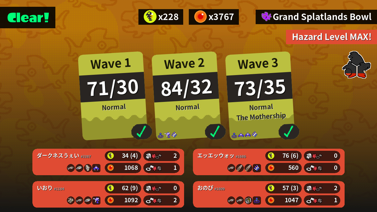 | Weapons | Grizzco Charger Grizzco Brella Grizzco Stringer | Grizzco Charger Grizzco Splatana Grizzco Splatana | Grizzco Dualies Grizzco Charger Grizzco Brella | Grizzco Charger Grizzco Charger Grizzco Slosher |
