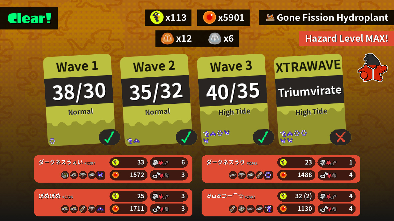 | Weapons | Grizzco Slosher Grizzco Blaster Grizzco Roller Grizzco Brella | Grizzco Splatana Grizzco Dualies Grizzco Charger Grizzco Brella | Grizzco Blaster Grizzco Blaster Grizzco Splatana Grizzco Roller | Grizzco Charger Grizzco Roller Grizzco Brella Grizzco Splatana |