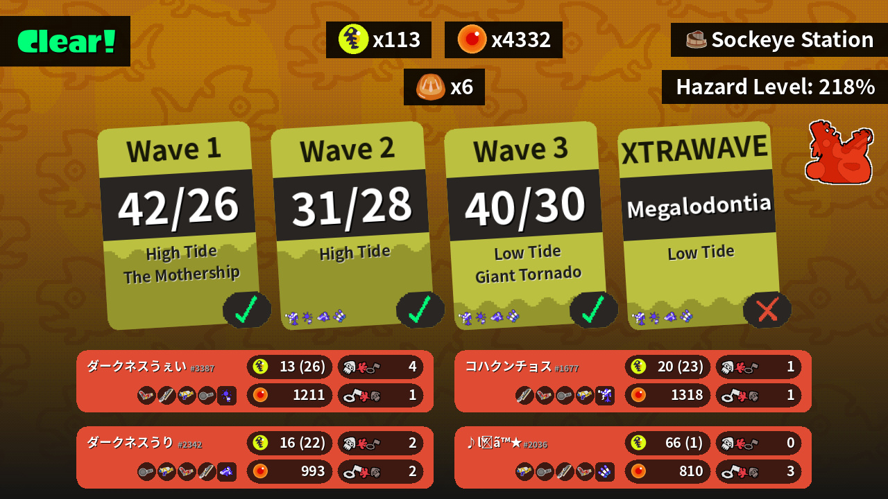 | Boss Salmonid | 8 | 9 | 7 | 13 |