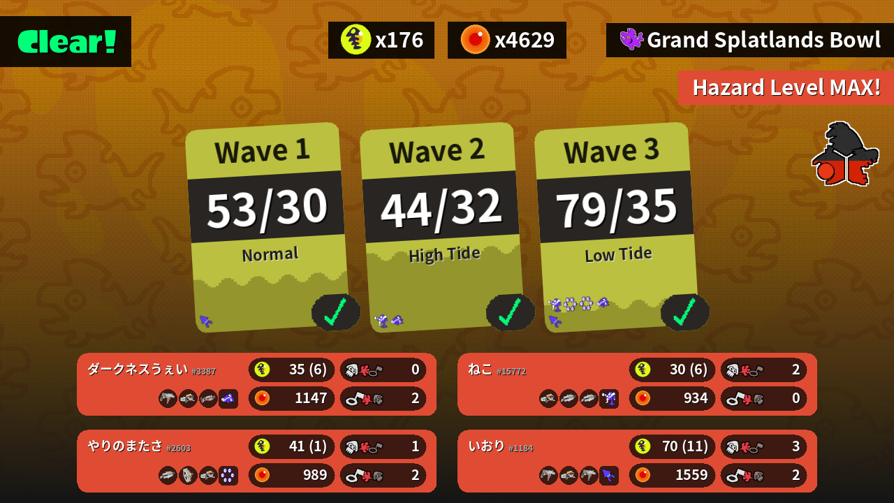 | Weapons | Grizzco Roller Grizzco Blaster Grizzco Charger | Grizzco Roller Grizzco Blaster Grizzco Roller | Grizzco Brella Grizzco Stringer Grizzco Blaster | Grizzco Blaster Grizzco Brella Grizzco Brella |