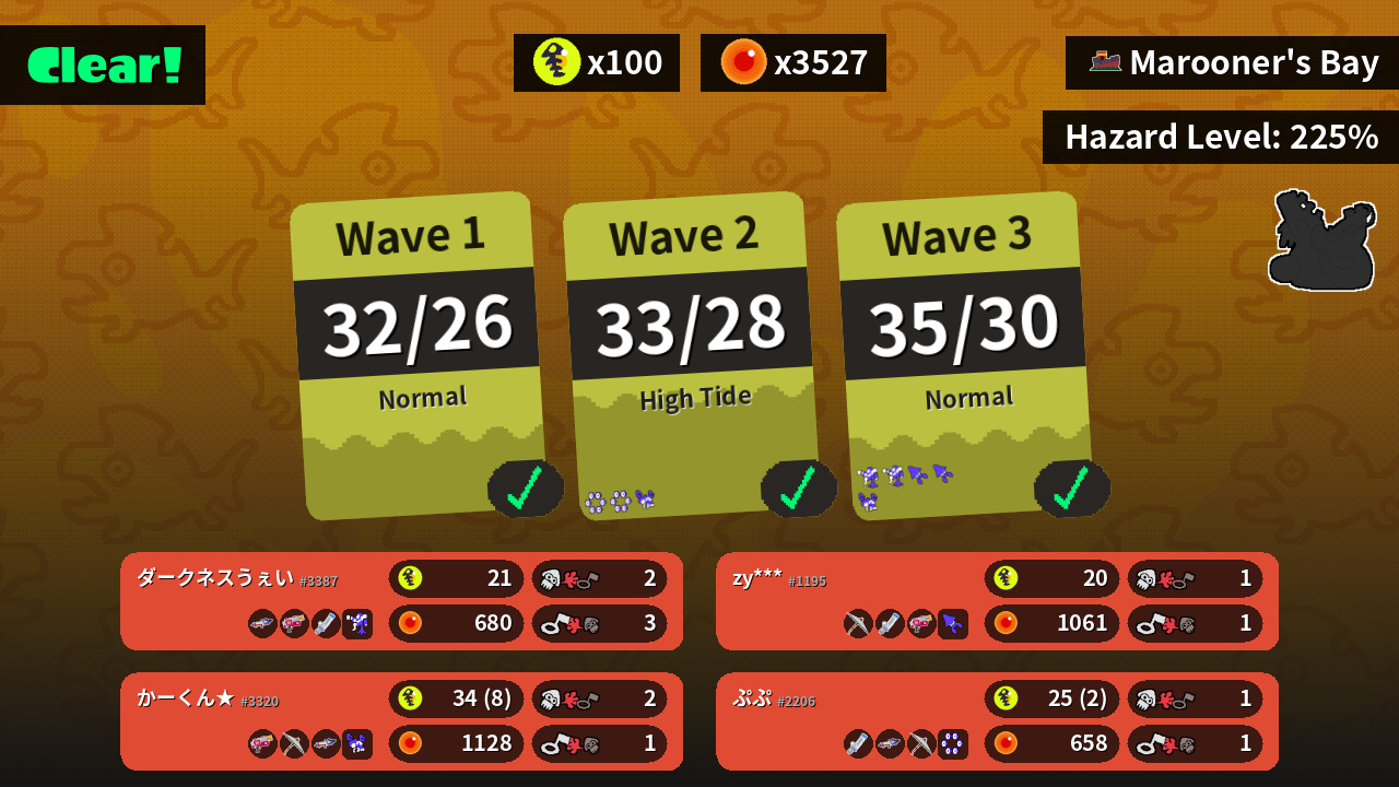| Boss Salmonid | 19 | 16 | 16 | 17 |
