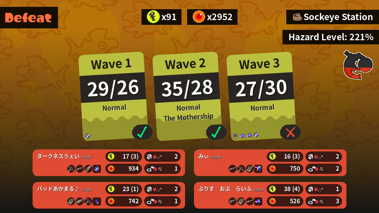 | Weapons | Undercover Brella Splat Charger Grizzco Splatana | N-ZAP '85 Splat Dualies Splat Charger | Splat Dualies S-BLAST '92 Undercover Brella | Splat Charger Undercover Brella Splat Dualies |