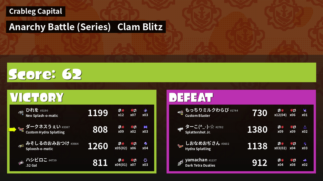| Mode | Clam Blitz - Anarchy Battle (Series) | ||
