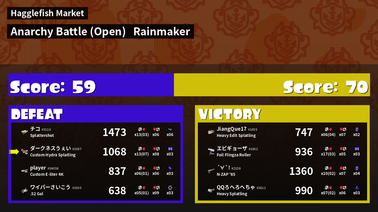 | Mode | Rainmaker - Anarchy Battle (Open) | ||