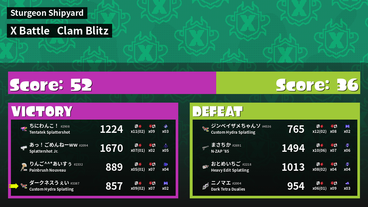 | Medals | #1 Splat Assister #1 Splattercolor Screen User #2 Overall Splatter | ||