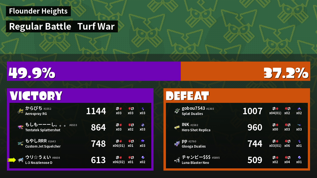 | Mode | Turf War - Regular Battle | ||