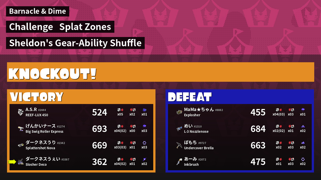 | Medals | #1 Splat Zone Guard #1 Ink Consumer #1 Zipcaster User | ||