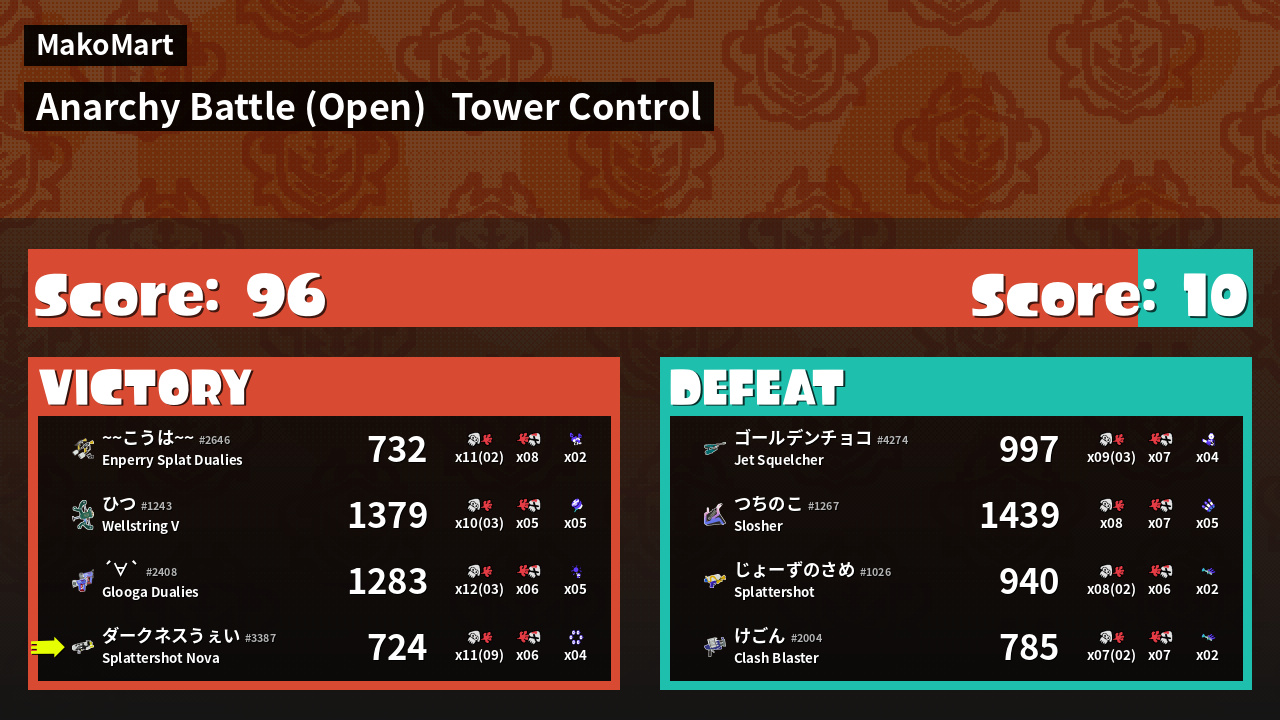 | Mode | Tower Control - Anarchy Battle (Open) | ||