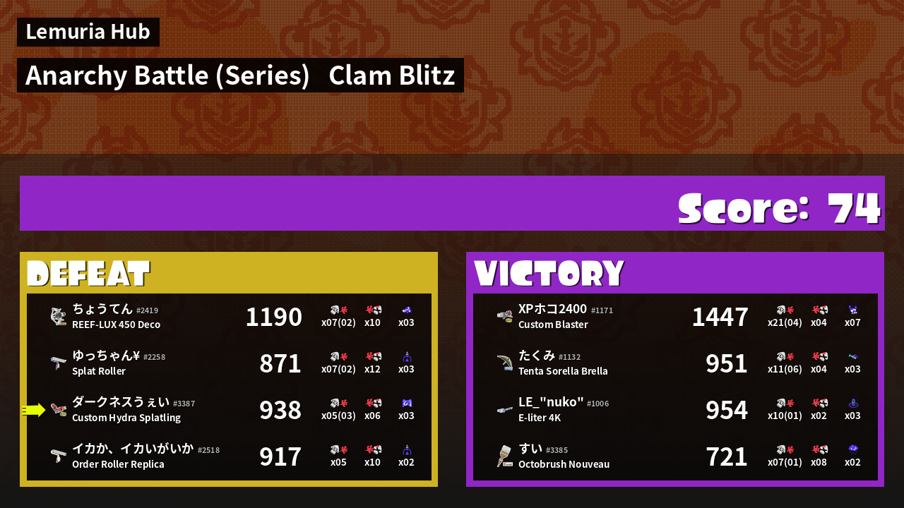 | Mode | Clam Blitz - Anarchy Battle (Series) | ||