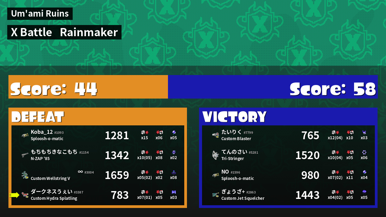 | Weapon | Custom Hydra Splatling ( Ink Mine / Splattercolor Screen) | ||