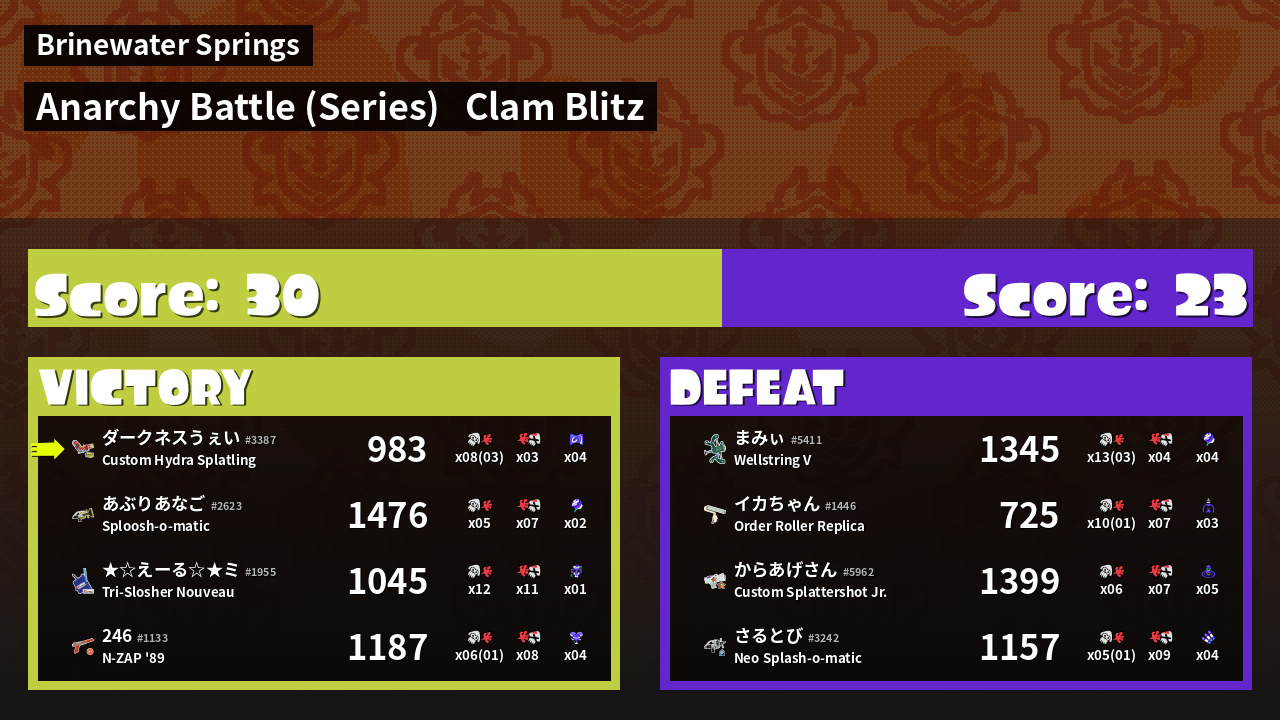 | Mode | Clam Blitz - Anarchy Battle (Series) | ||