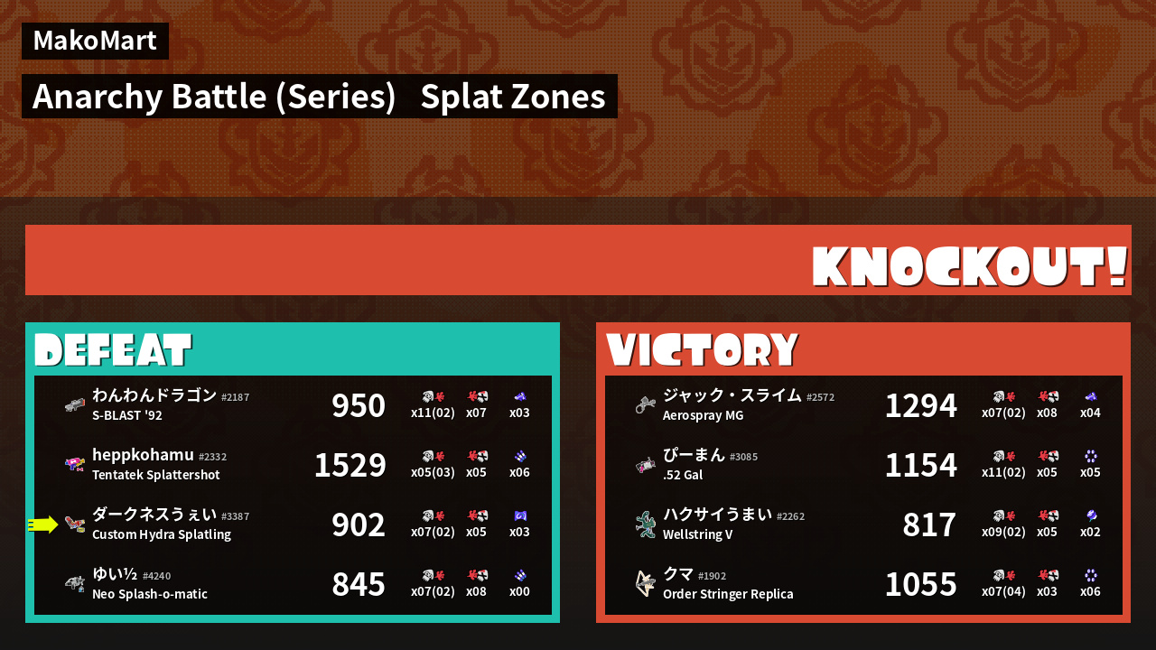 | Mode | Splat Zones - Anarchy Battle (Series) | ||