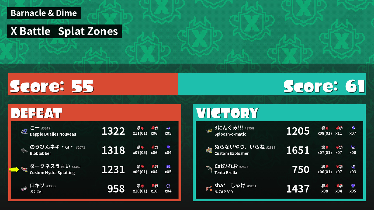 | Mode | Splat Zones - X Battle | ||