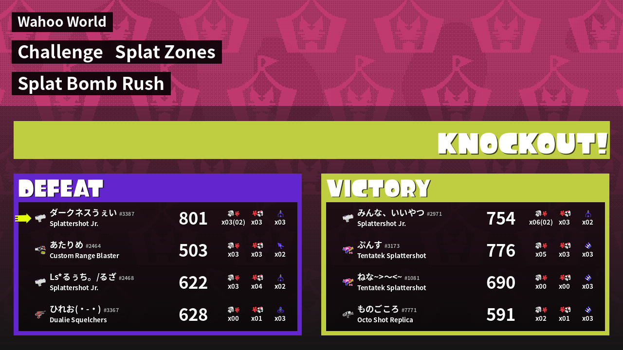 | Challenge | Splat Bomb Rush Let the Splat Bombs fly in this free-for-all! | ||