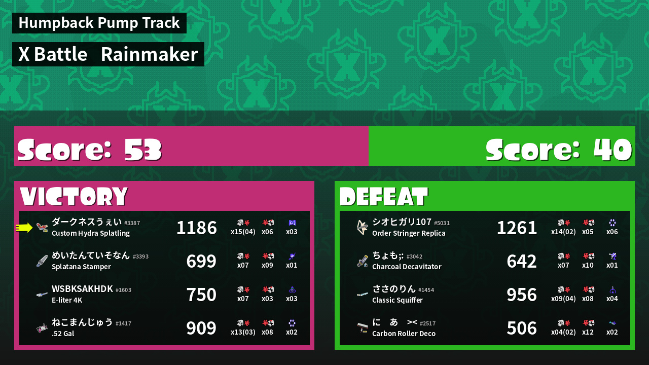 | Medals | #1 Overall Splatter #1 Score Booster #1 Turf Inker | ||
