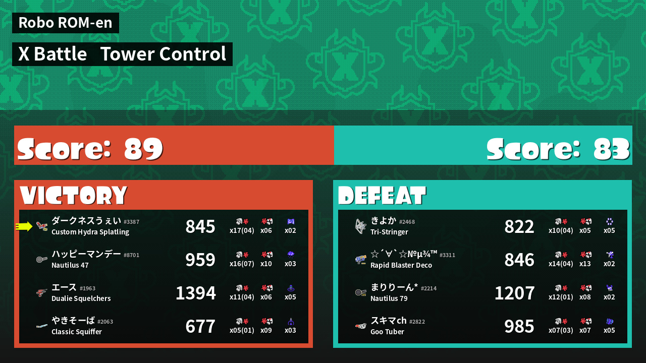 | Mode | Tower Control - X Battle | ||