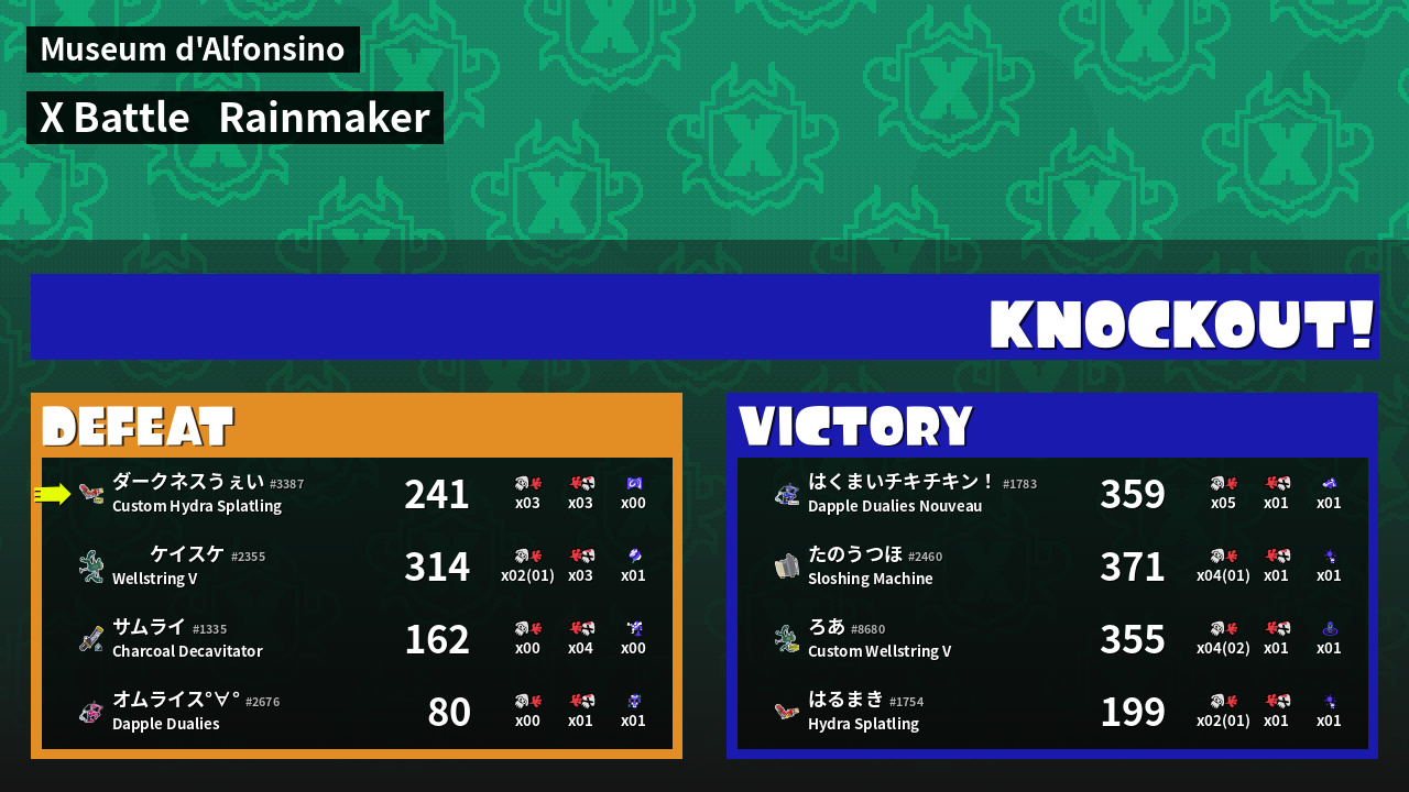 | Weapon | Custom Hydra Splatling ( Ink Mine / Splattercolor Screen) | ||