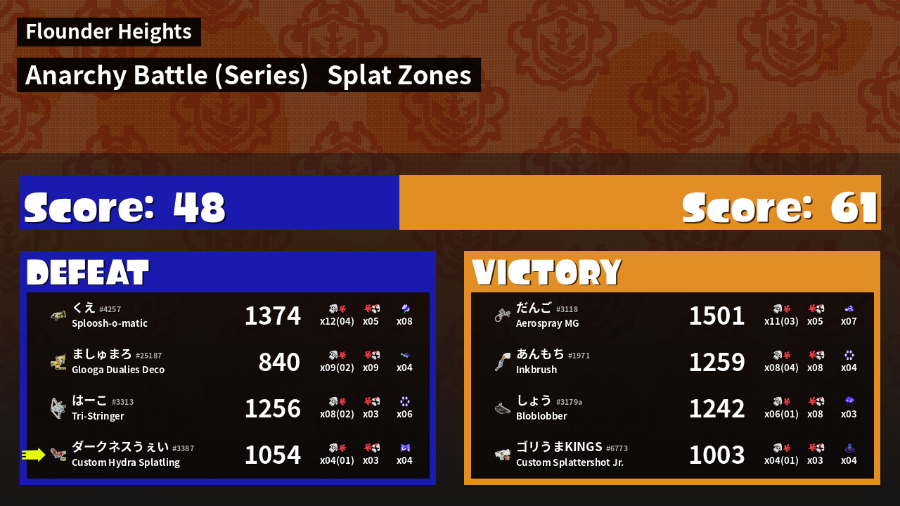 | Mode | Splat Zones - Anarchy Battle (Series) | ||