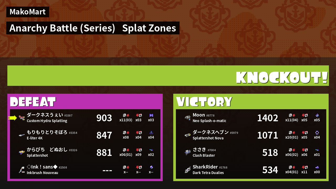 | Mode | Splat Zones - Anarchy Battle (Series) | ||