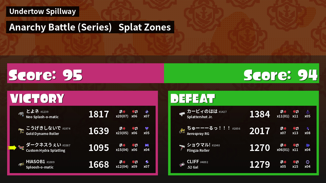 | Mode | Splat Zones - Anarchy Battle (Series) | ||