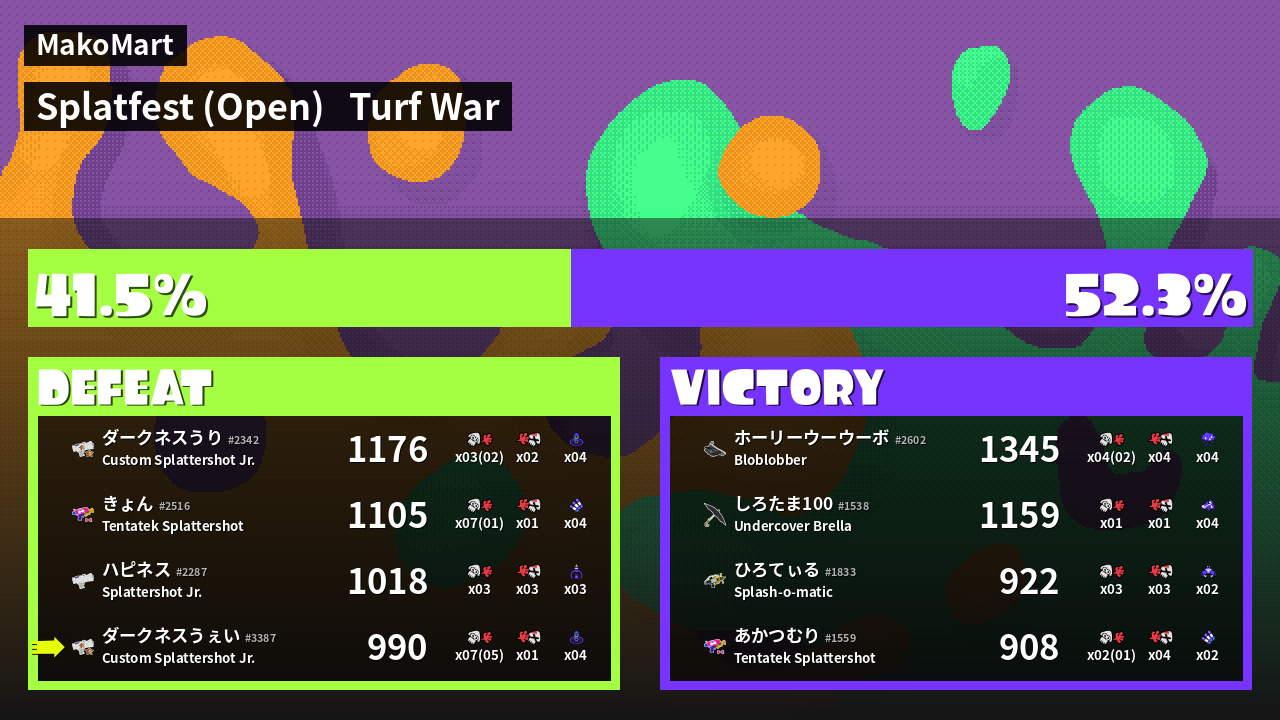 | Medals | #1 Overall Splatter #1 Popular Target #1 Splat Assister | ||