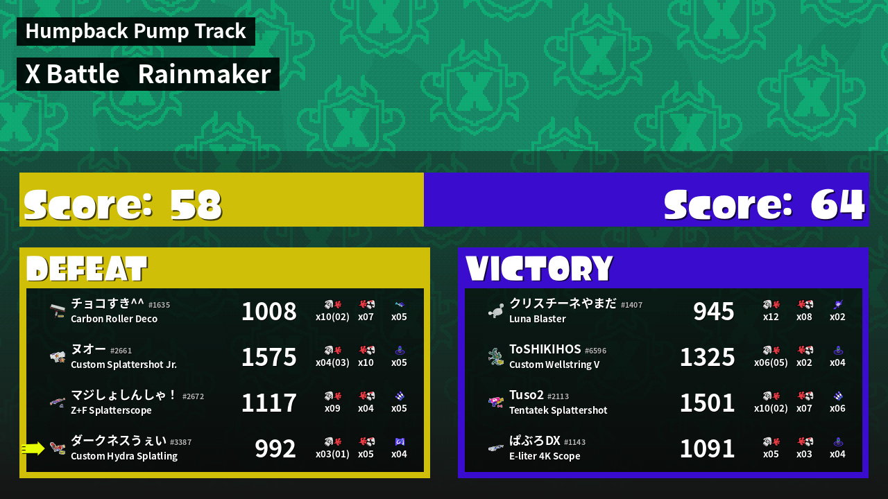 | Mode | Rainmaker - X Battle | ||