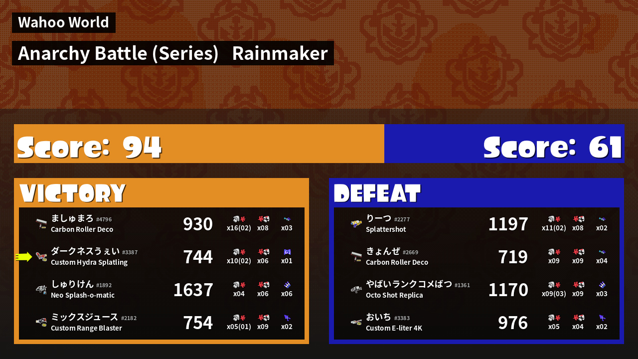 | Mode | Rainmaker - Anarchy Battle (Series) | ||