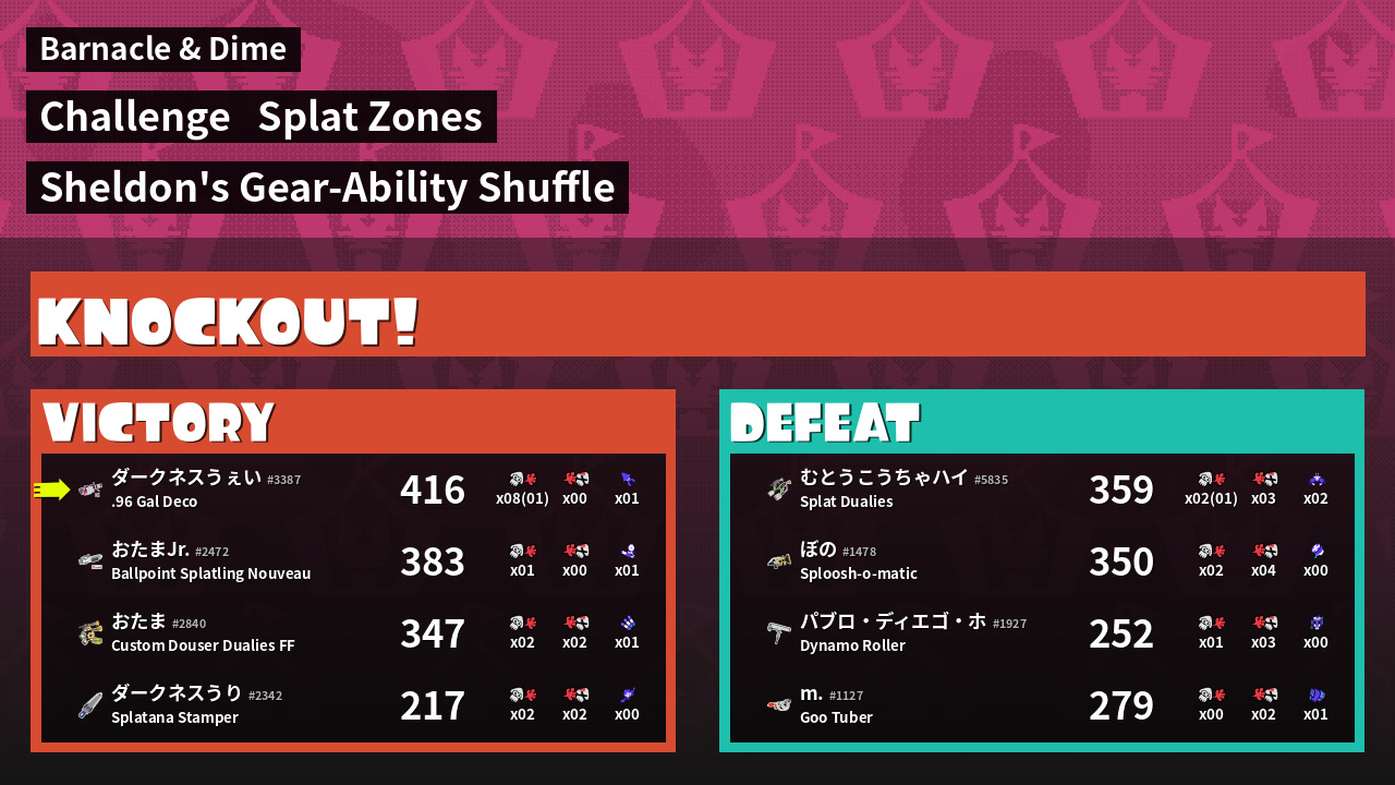 | Medals | #1 Overall Splatter #1 Splat Zone Guard #1 Turf Inker | ||